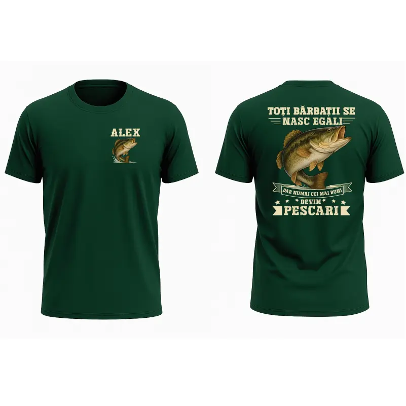 Acest tricou pescar personalizat este dedicat celor care cred că pescuitul este mai mult decât un hobby. Mesajul „Cei mai buni devin pescari” transmite încredere, pasiune și apartenență la acest stil de viață.