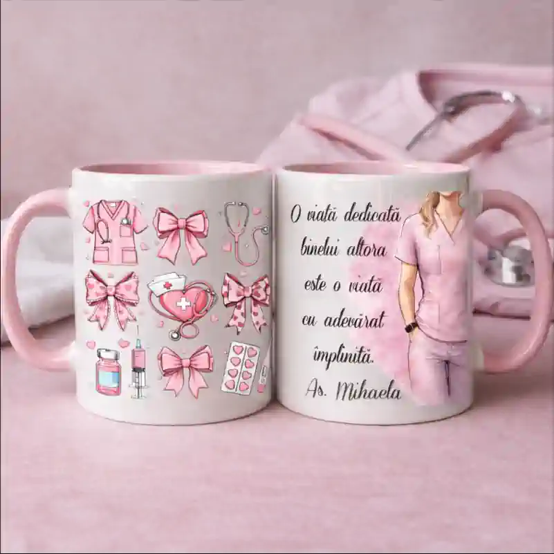 Transformă un gest simplu într-un cadou cu adevărat memorabil cu această cană personalizată pentru asistente medicale, creată special pentru a onora dedicarea și bunătatea celor care au grijă de pacienti zi de zi.